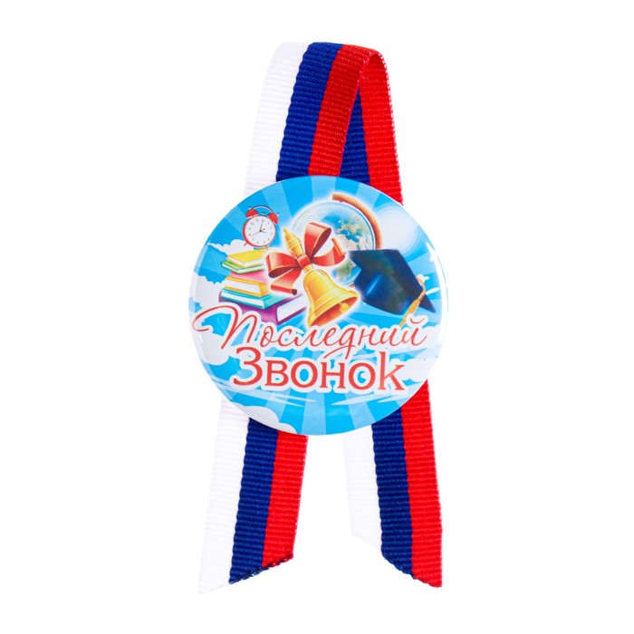 Значок на выпускной закатной «Последний звонок» триколор, d=5.5 см — Характеристики