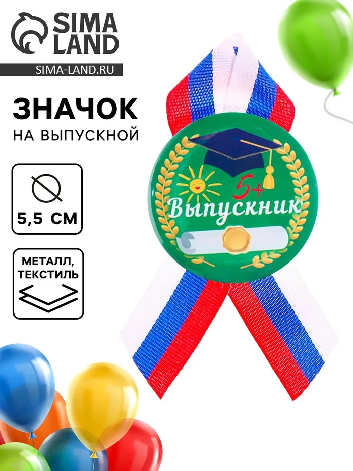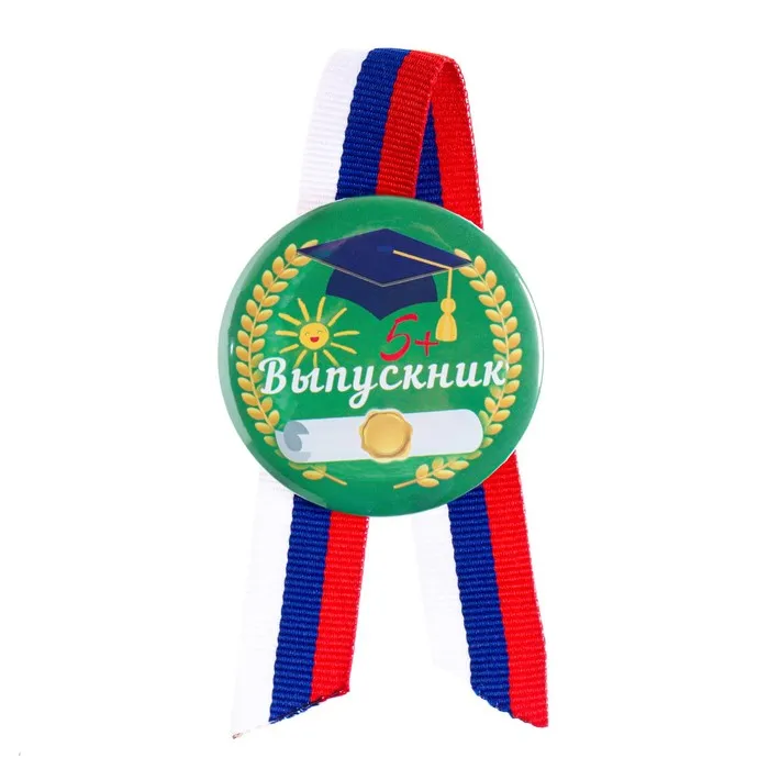 Значок на выпускной закатной «Выпускник» триколор, d=5.5 см — Характеристики