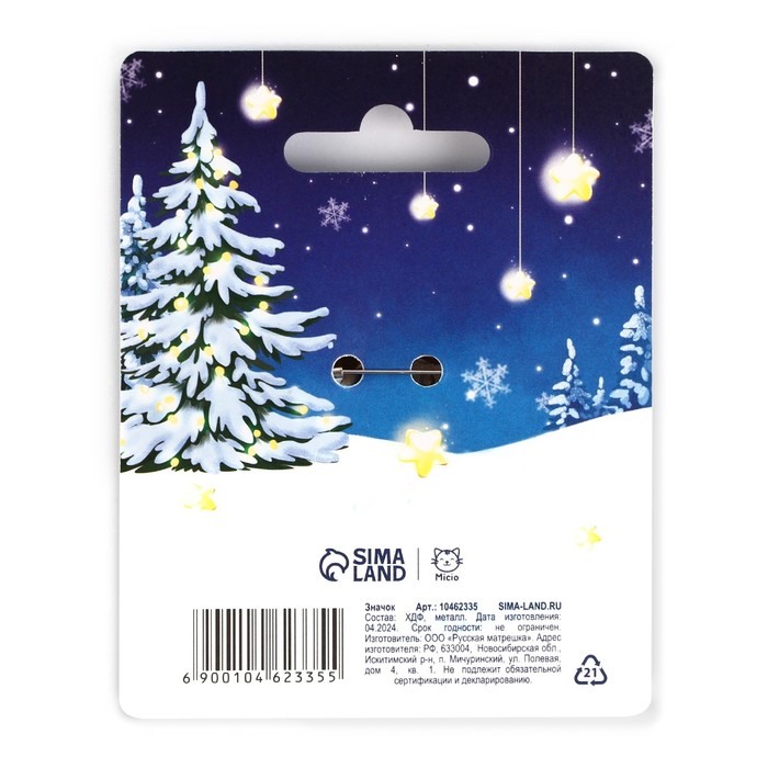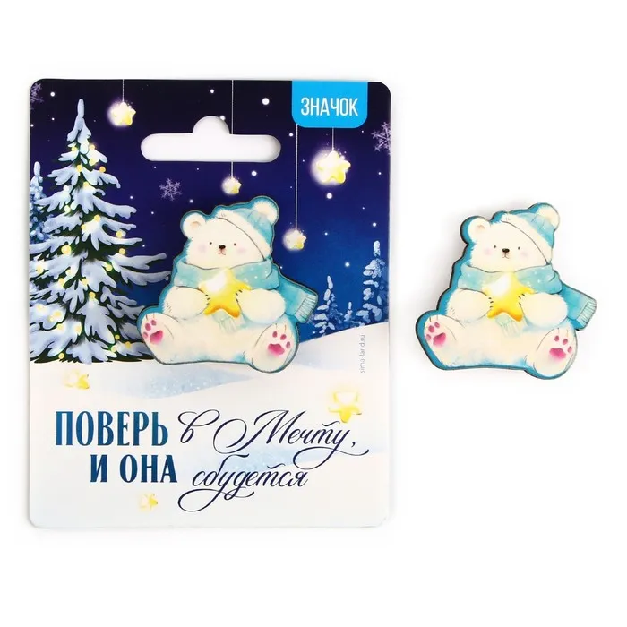 Значок новогодний «мечта с мишкой» 3.7×4 см — Характеристики