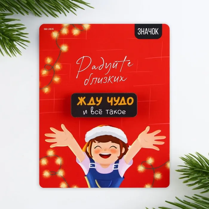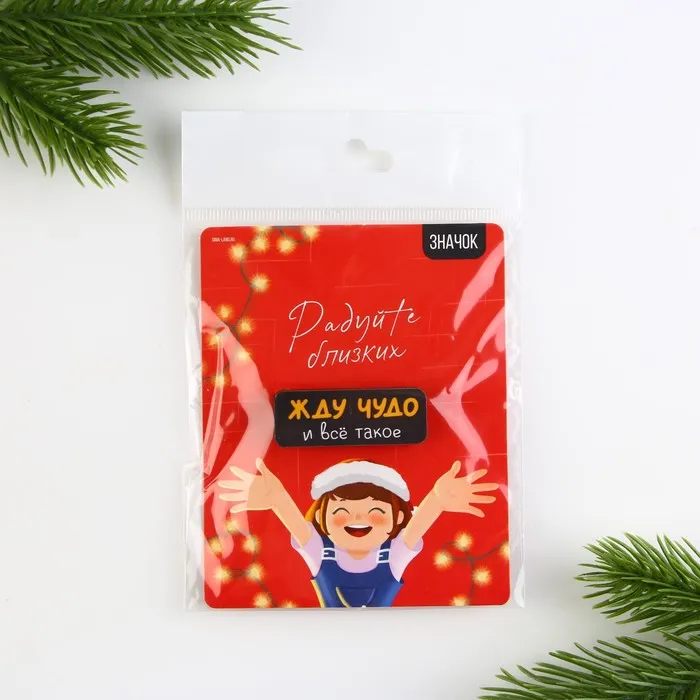 Значок новогодний «радуйте близких» 4×1.5 см — Характеристики