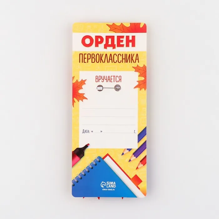 Значок орден на 1 Сентября «Я - Первоклассник», d= 6,5 см поможет рассказать об этом важном событии миру. Лёгкий пластиковый сувенир с красочной картинкой никого не оставит равнодушным. Изделие дополнено булавкой на оборотной стороне, так что его сразу можно надеть.