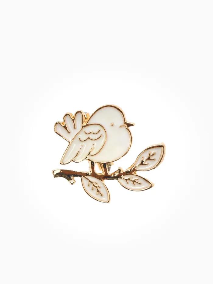 Откройте для себя нежность и стиль с удивительным значком «Птичка» на веточке. Этот изысканный аксессуар длиной 2,7 см выполнен в белом цвете с золотыми акцентами, что придаёт ему утончённый и элегантный вид, идеально подходящий для женщин и девочек.
