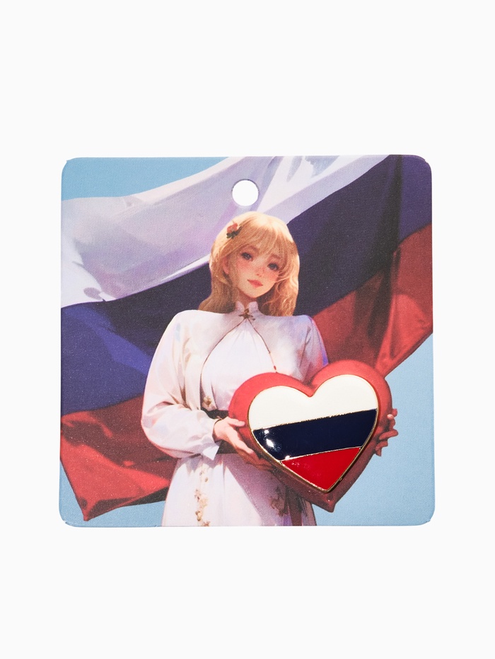 Значок «Россия» в сердце, цветной в серебре — Характеристики