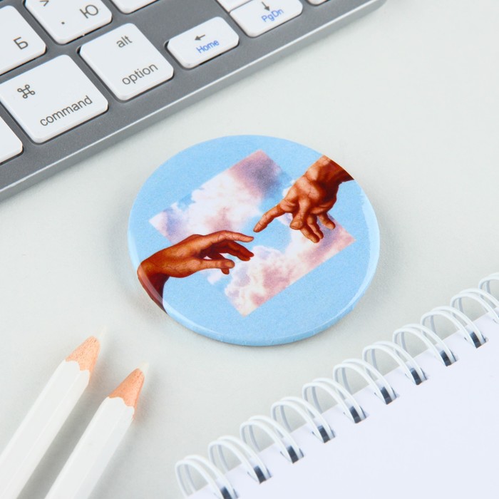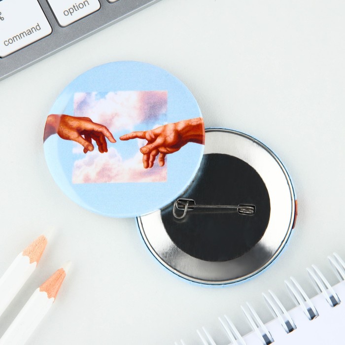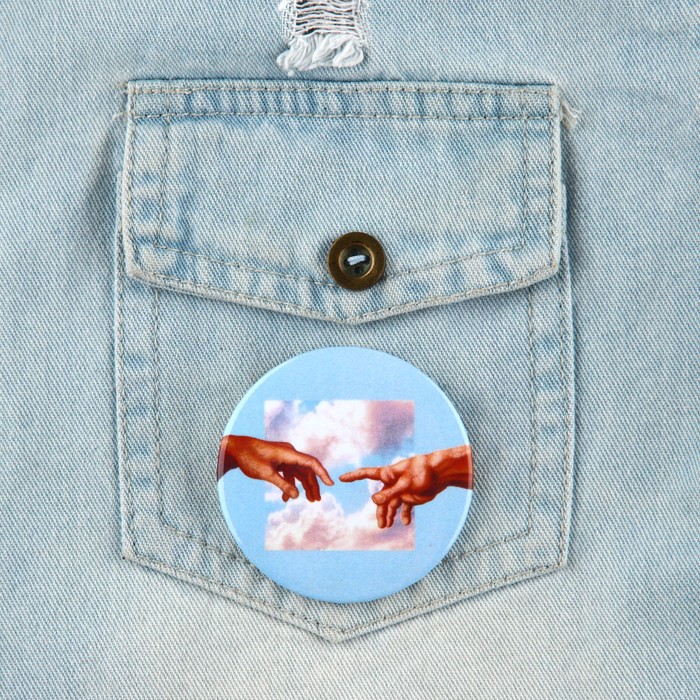 Закатной значок - это металлическая основа круглой формы с дизайном.