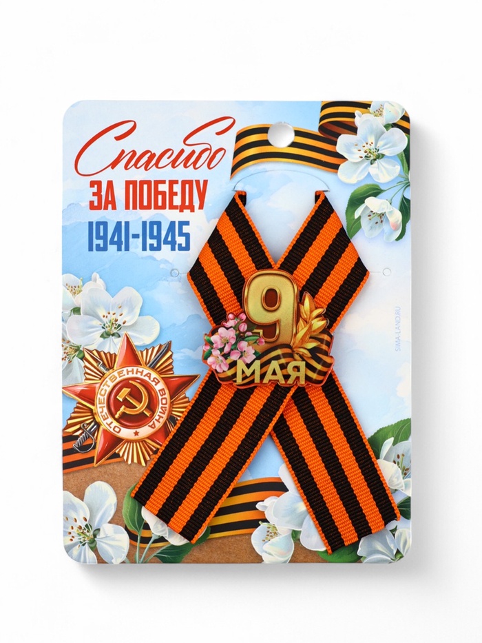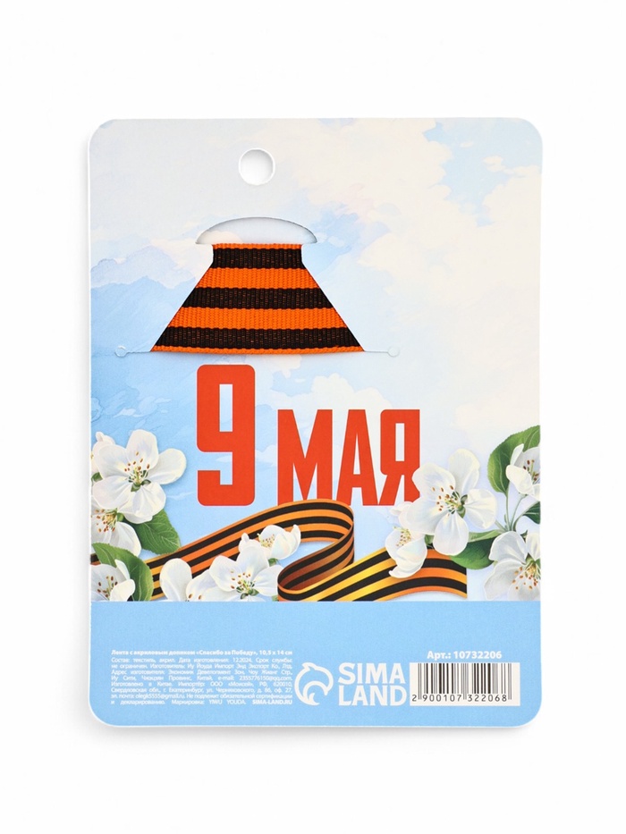 Значок с георгиевской лентой на 9 Мая «Спасибо за победу», 10.5×14 см — Характеристики