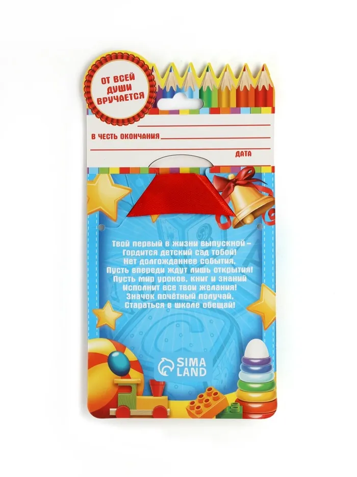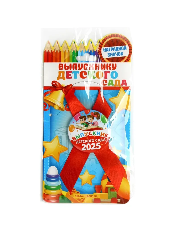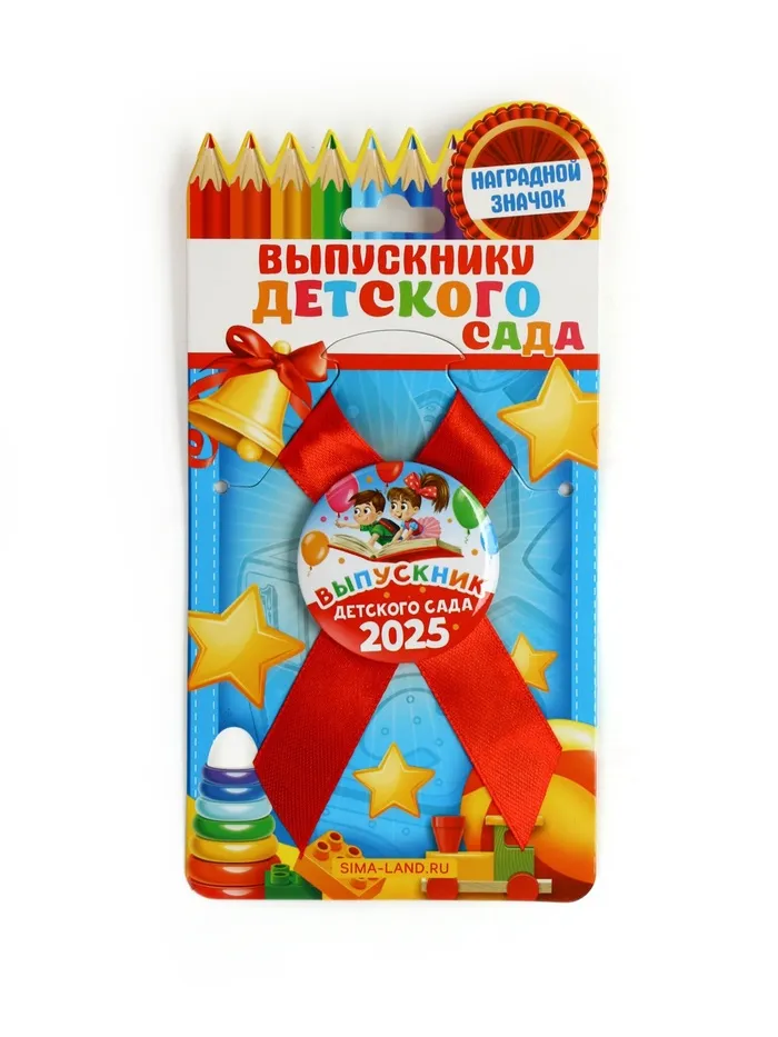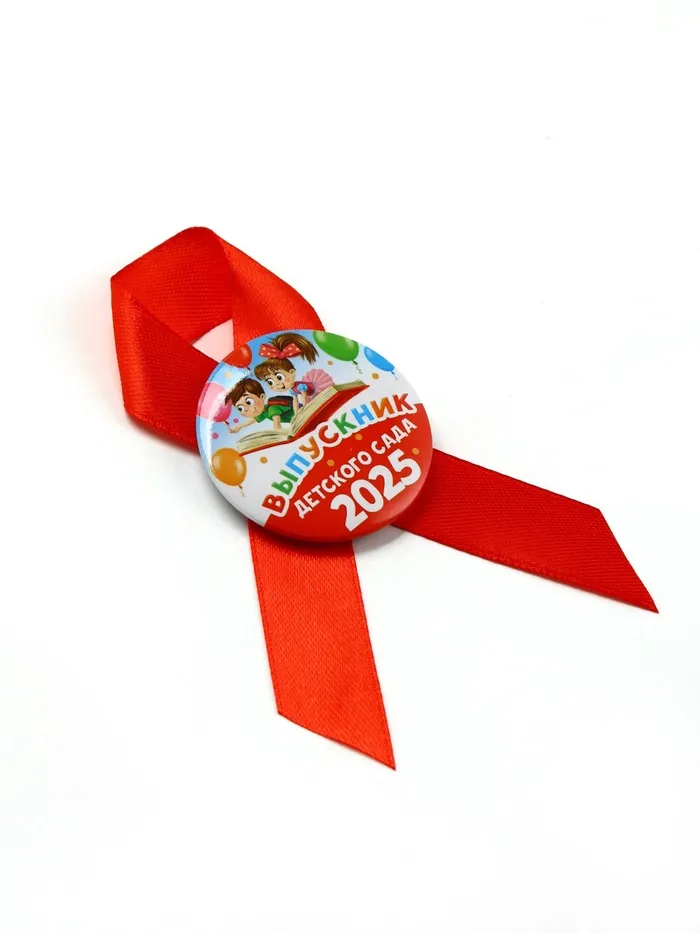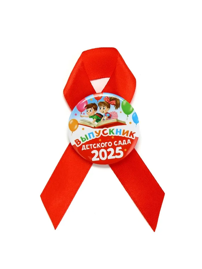 Значок с лентой на выпускной «Выпускник детского сада 2025», диам 4.5 см — Характеристики