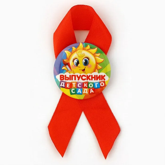 Значок с лентой на Выпускной «Выпускник детского сада», солнце, диам. 4,5 см