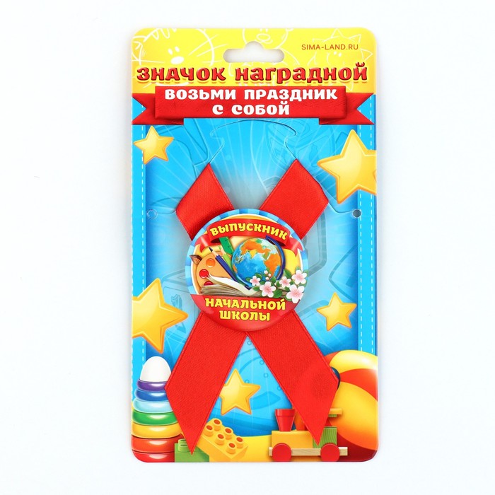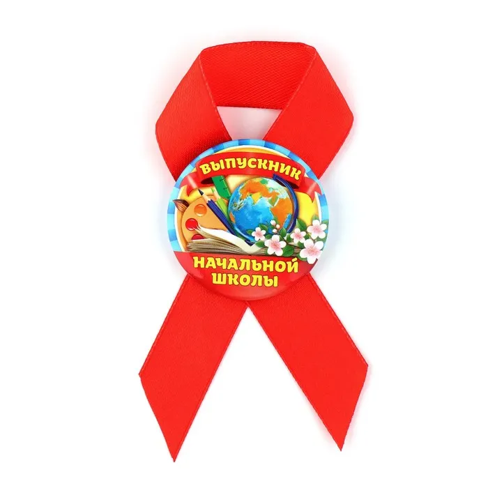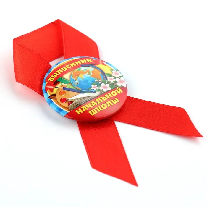 Значок с лентой на Выпускной «Выпускник начальной школы», d = 4,5 см