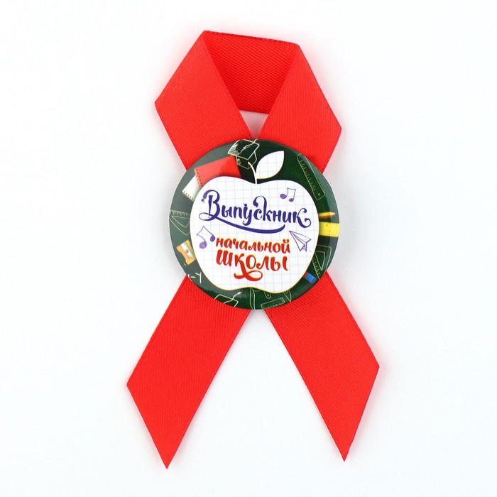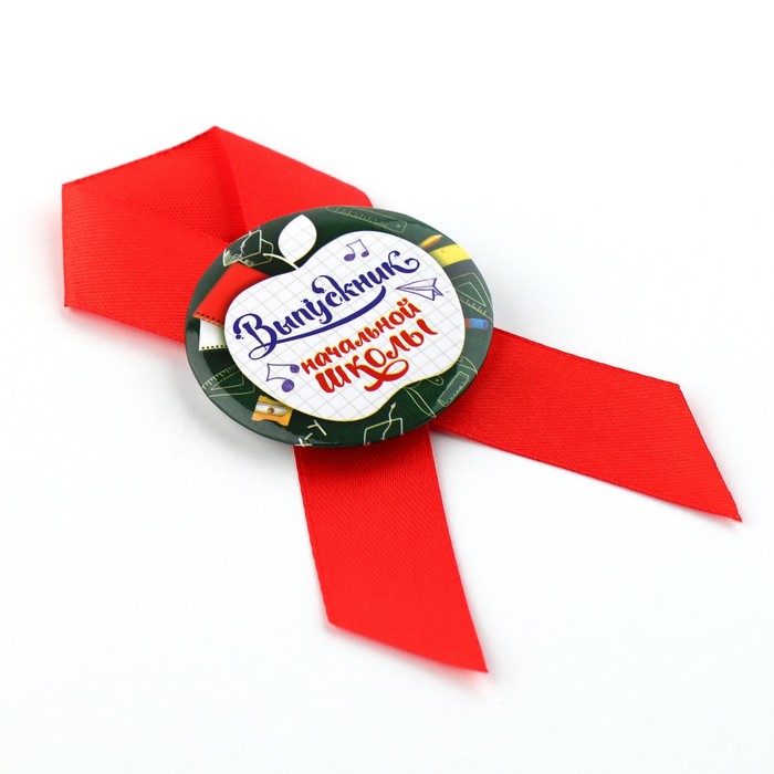 Значок с лентой на выпускной «Выпускник начальной школы», d=4.5 см