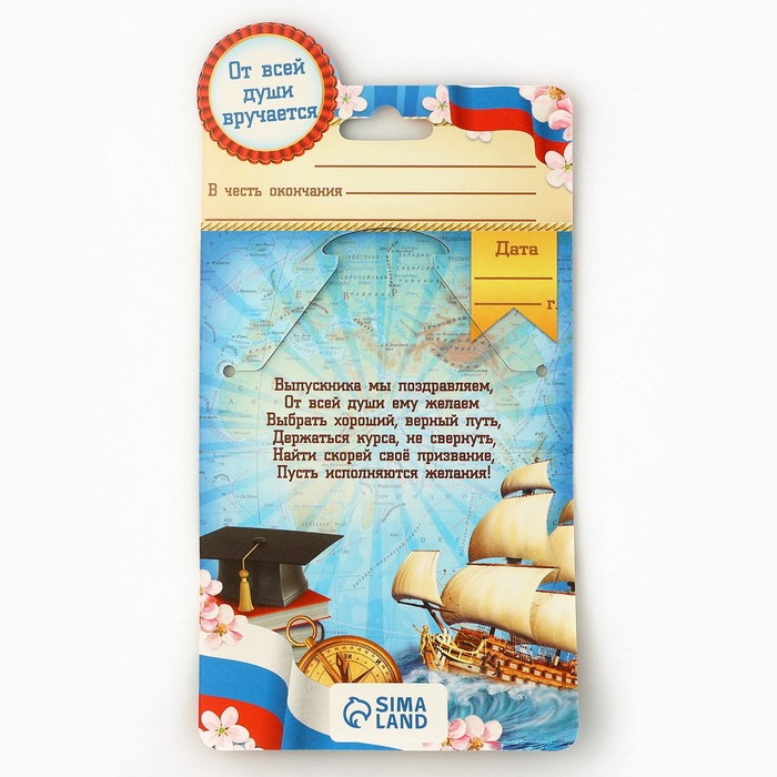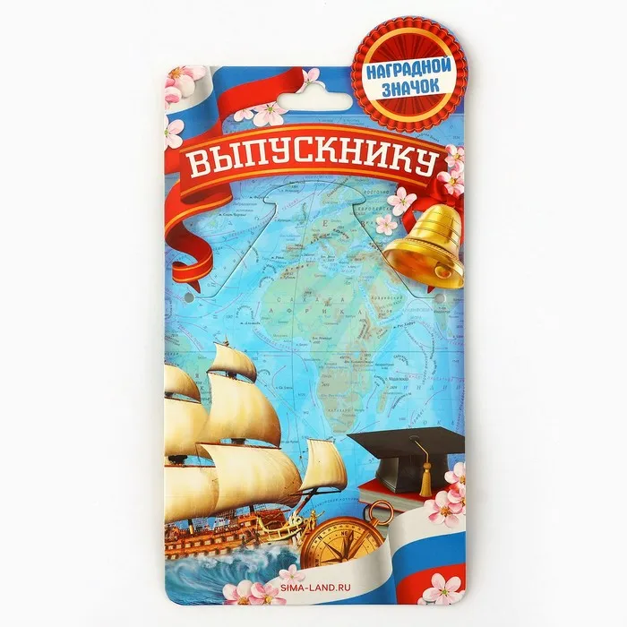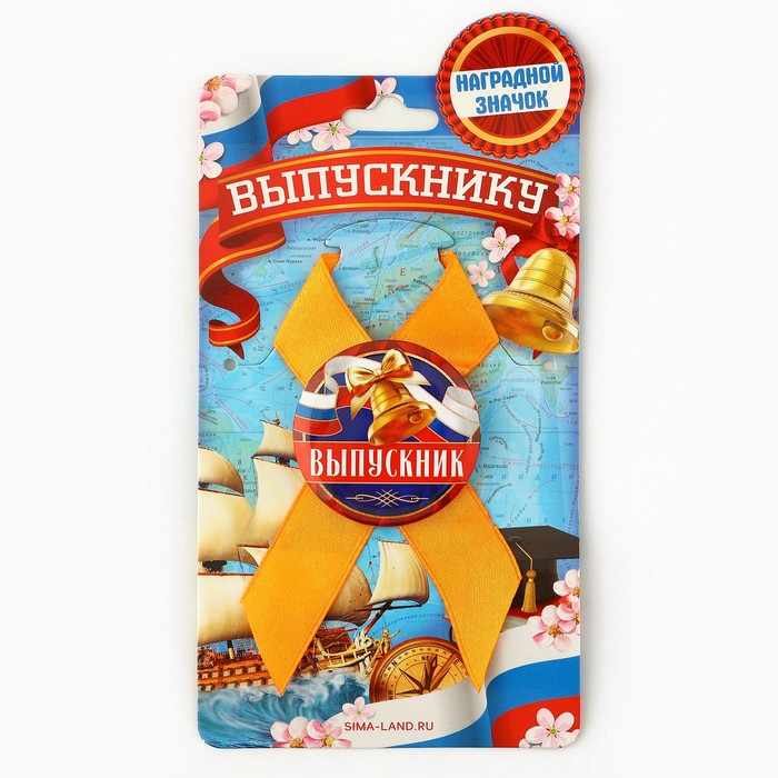 Выпускной - это особое событие для каждого ребёнка. Сувенир изготовлен из лёгкого пластика и декорирован яркой текстильной лентой шириной 1,8 см. Изделие дополнено булавкой на оборотной стороне, так что его сразу можно надеть на счастливого получателя. Каждый значок на булавке с лентой прикреплен к яркой, нарядной подложке - открытке, ребенку будет вдвойне приятно получить такой презент