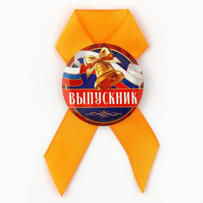 Значок с лентой на выпускной «Выпускнику», диаметр 4.5 см
