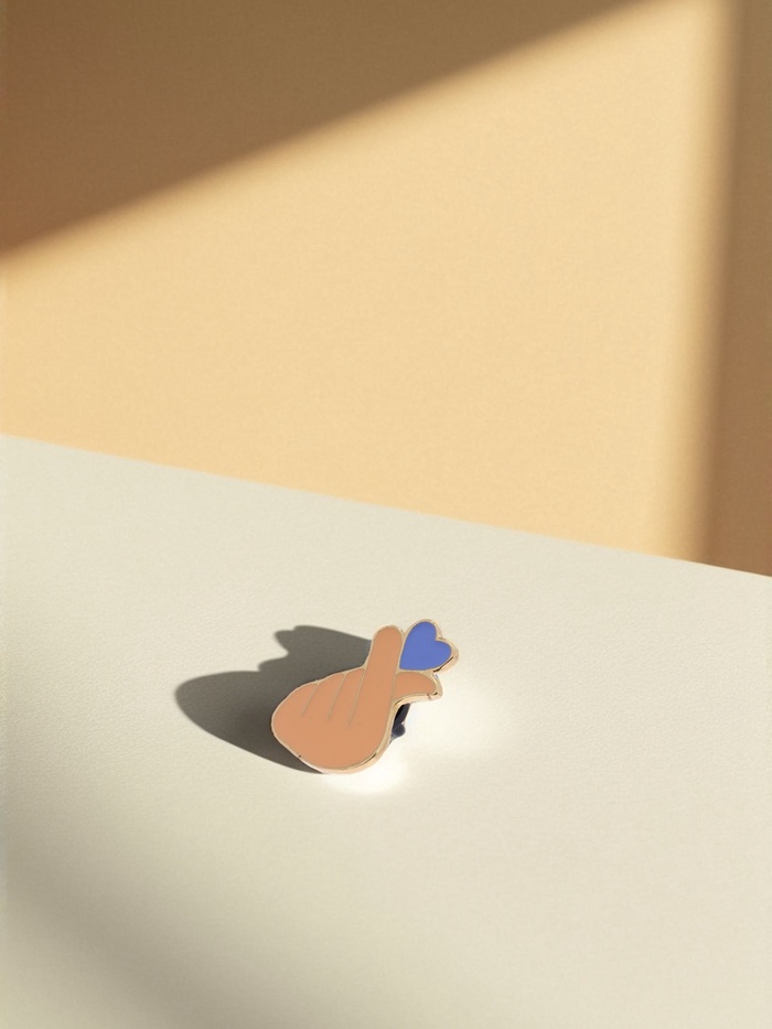 Значок «Сердце» жест любви, цвет бежево-сиреневый в золоте — Характеристики