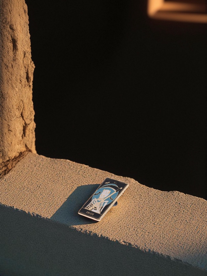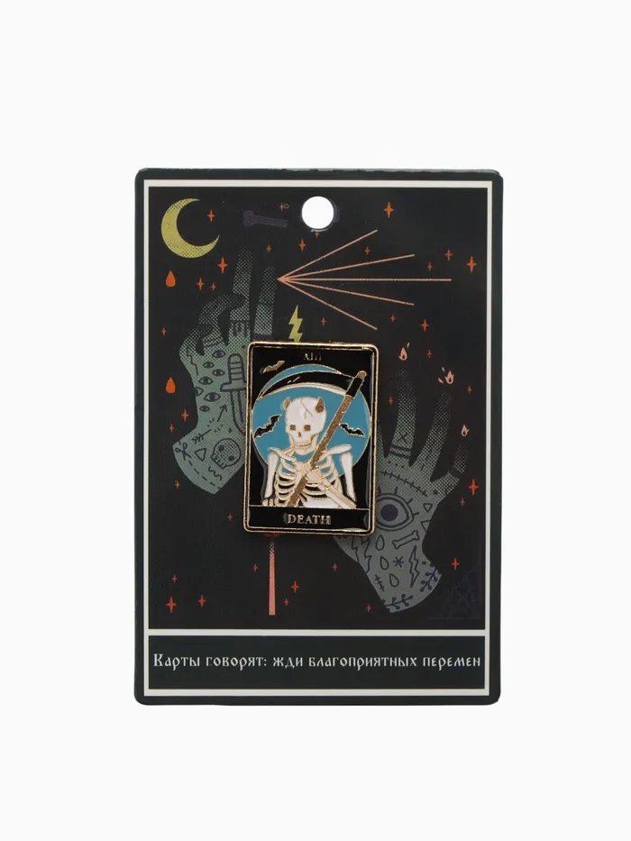 - Символика: изображение «Смерти» олицетворяет перемены и обновление, что делает значок актуальным и вдохновляющим аксессуаром.