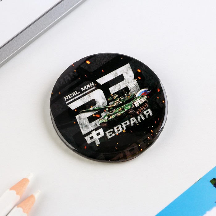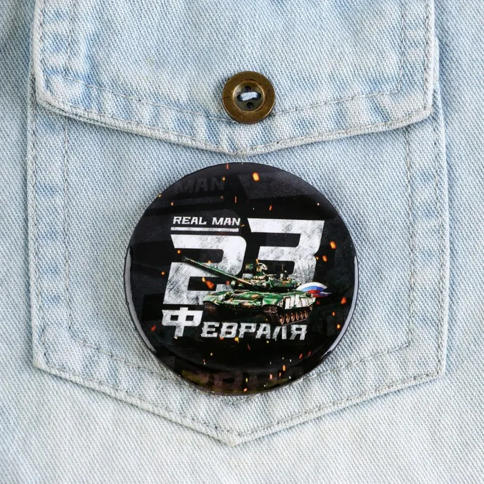 Подарите заслуженное внимание и прекрасное настроение отважному защитнику Родины в суровый февральский день вместе с нашим уникальным значком. Сувенир традиционной формы с красочным дизайном дополнен булавкой на обратной стороне, поэтому его легко прикрепить к одежде.
