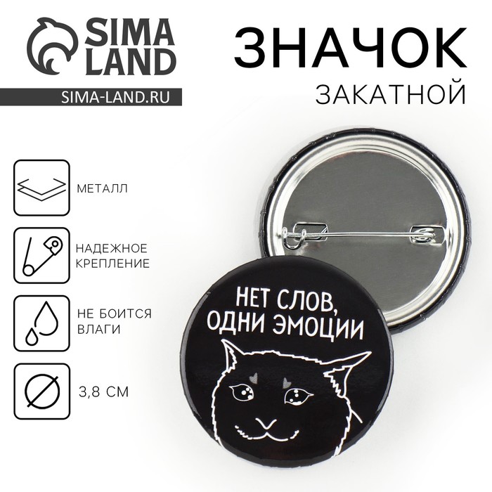 Значок лёгкий и не оттягивает изделие. Рисунок нанесен с помощью УФ-печати, благодаря этому значок имеет четкое изображение и глянцевую поверхность. Значок устойчив к царапинам, не выгорает на солнце. Крепление значка - булавка.