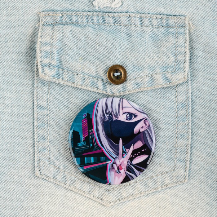 Значок закатной «Аниме девушка в городе», d = 5,6 см
