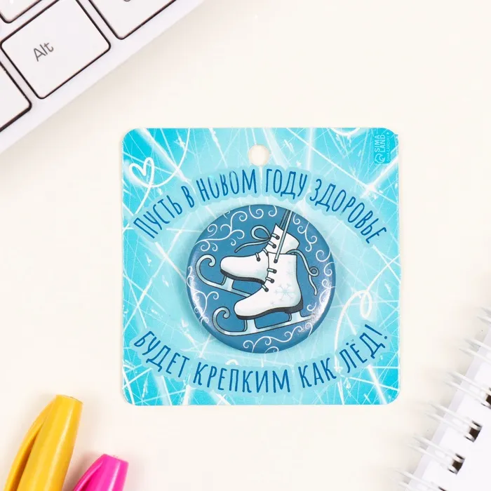 Значок закатной d=35 мм "Коньки" 6,5х6,5 см — Характеристики