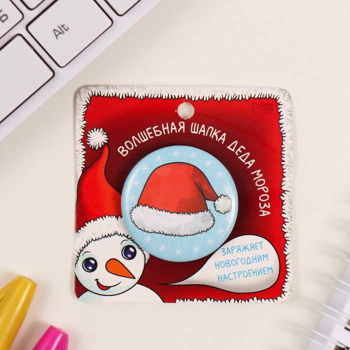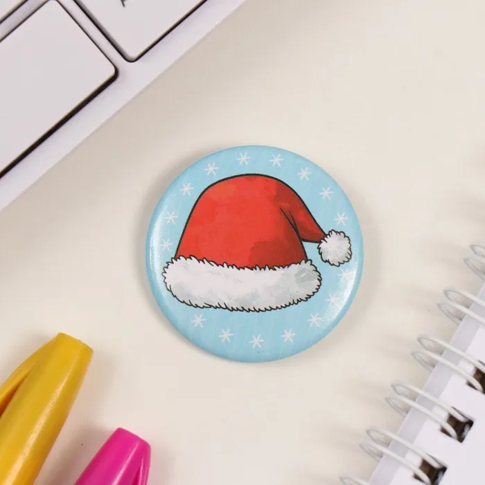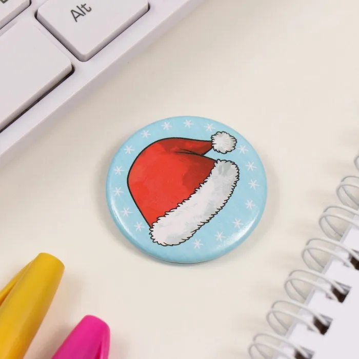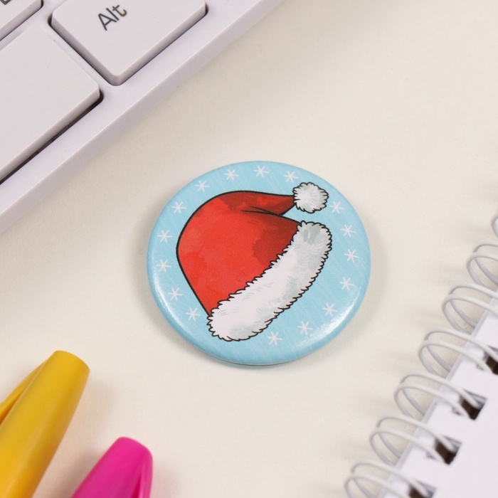 Значок закатной d=35 мм "Новогодний колпак" 6,5х6,5 см — Характеристики