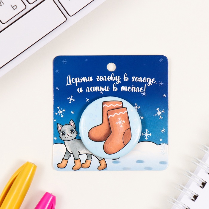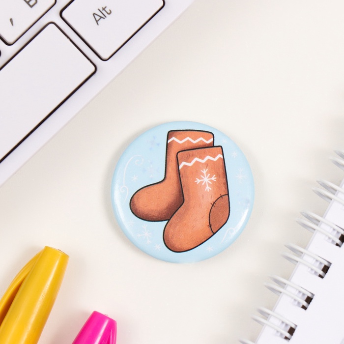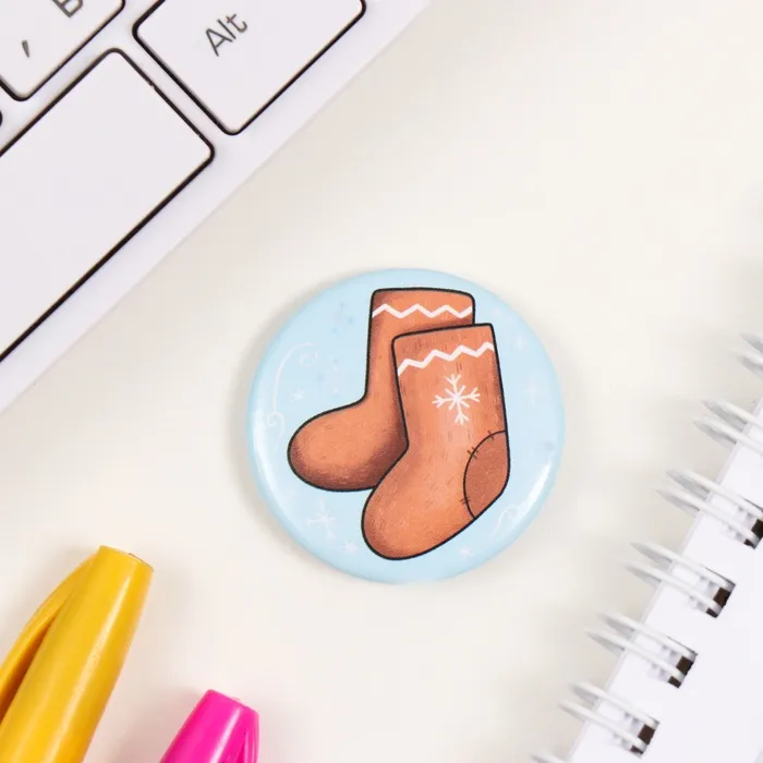 Значок закатной d=35 мм "Валенки" 6,5х6,5 см — Характеристики
