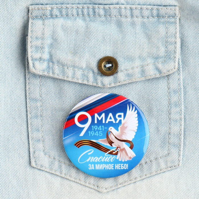 Значок закатной на День Победы «9 мая Спасибо за мирное небо», d = 5,6 см — Характеристики