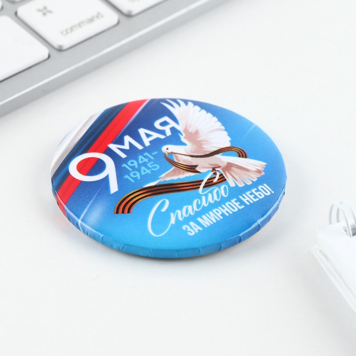 Значок закатной на День Победы «9 мая Спасибо за мирное небо», d = 5,6 см