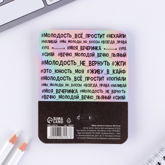 Значок закатной на открытке, набор «А ты норм», d=25мм. — Характеристики