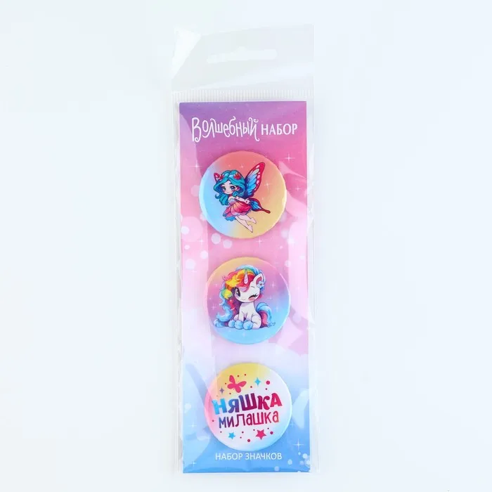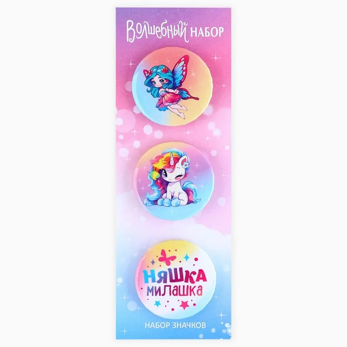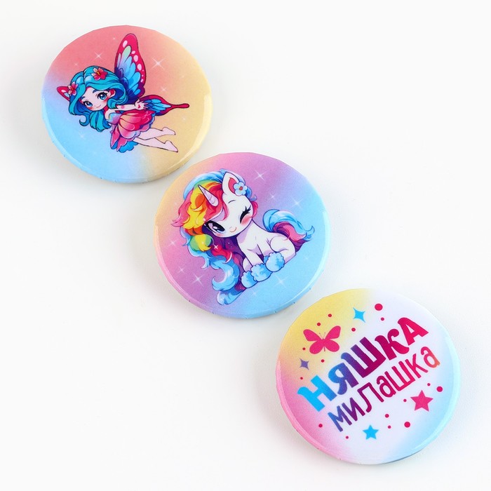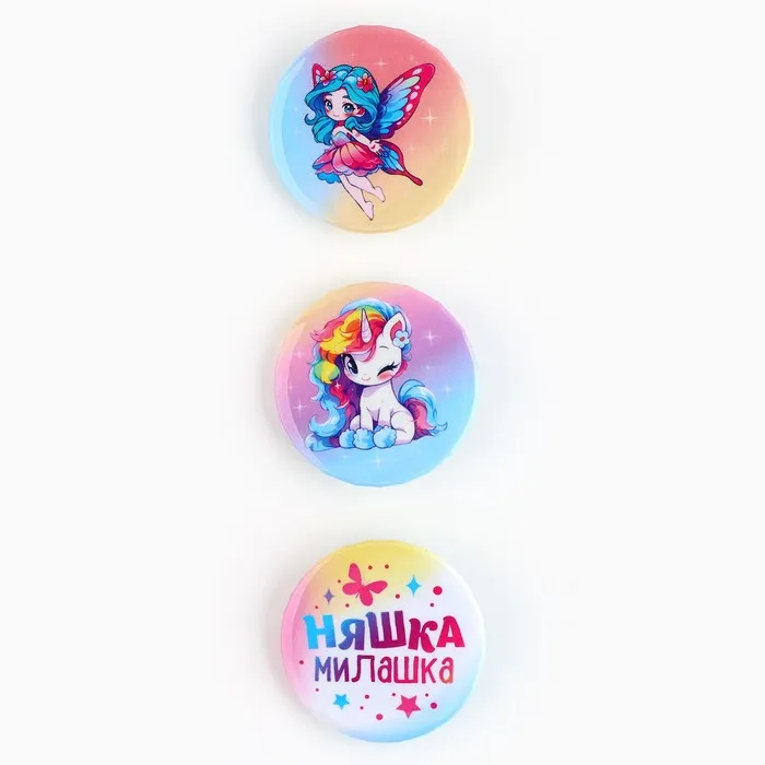 Значок закатной «Няшка милашка», 38 мм, набор 3 шт. - яркий элемент, который порадует любого.