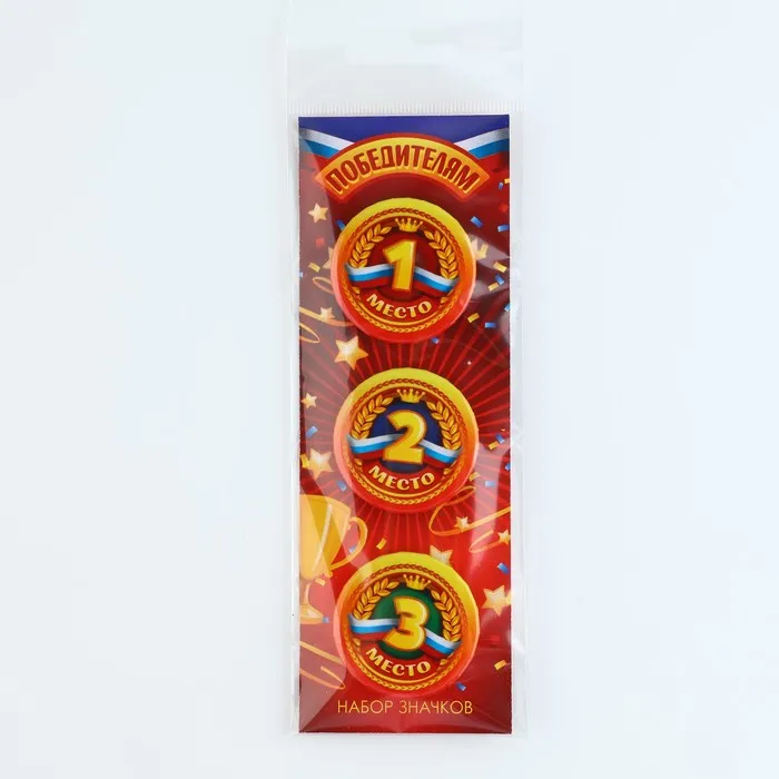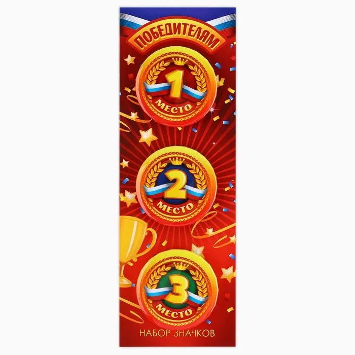 Значок закатной «Победителям 1,2,3 место», 38 мм, набор 3 шт. - яркий элемент, который порадует любого.