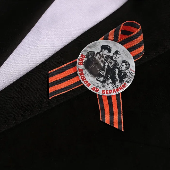 Значок закатной с георгиевской лентой «Они дошли до Берлина!» — Характеристики