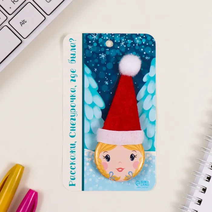 Значок закатной с колпаком d=35 мм "Снегурочка" 6,5х11 см — Характеристики