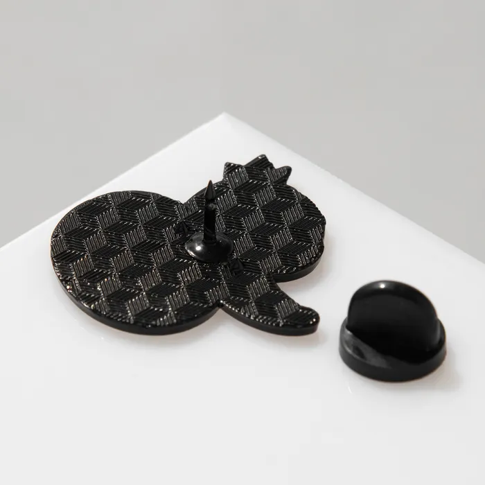 - Удобство крепления: чёрная фурнитура надёжно фиксирует значок на любой ткани, не повреждая её.