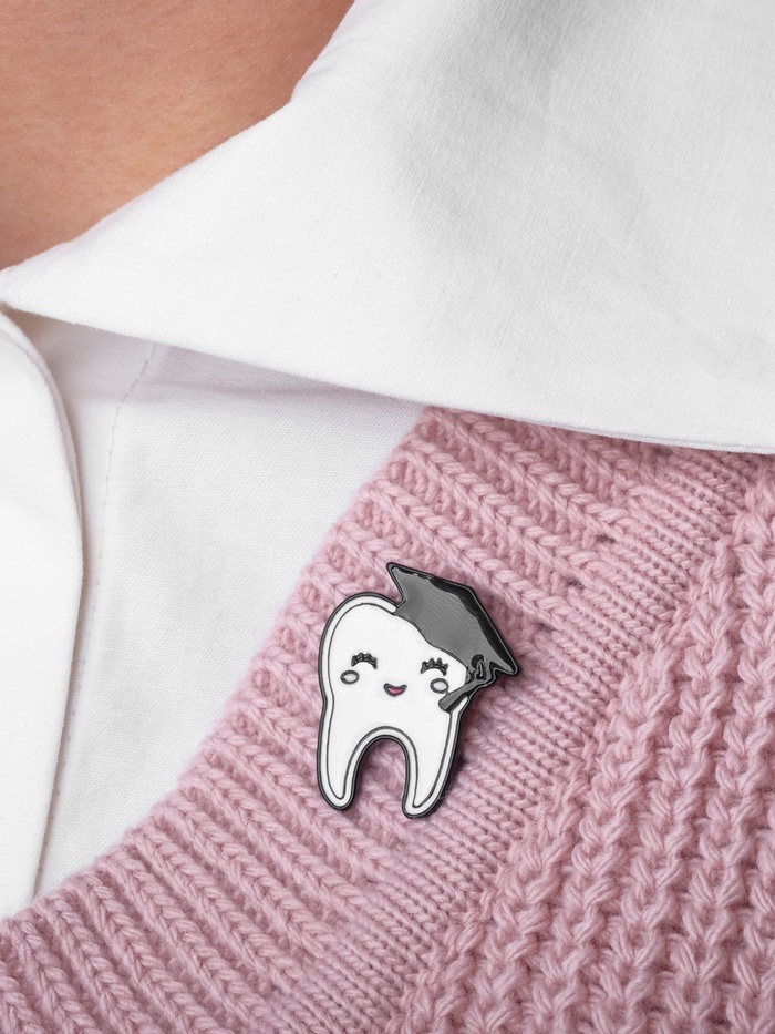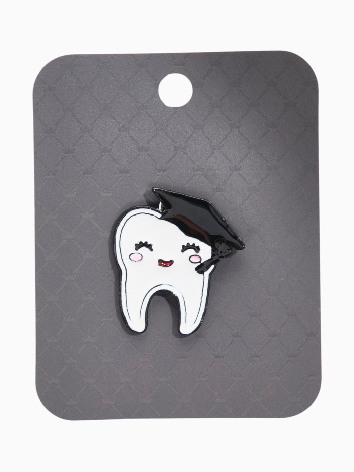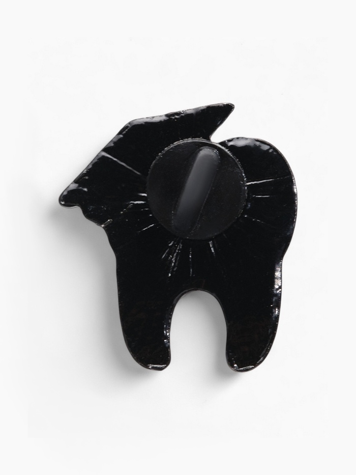 Значок «Зуб в академической шапочке», чёрно-белый в чёрном металле — Характеристики