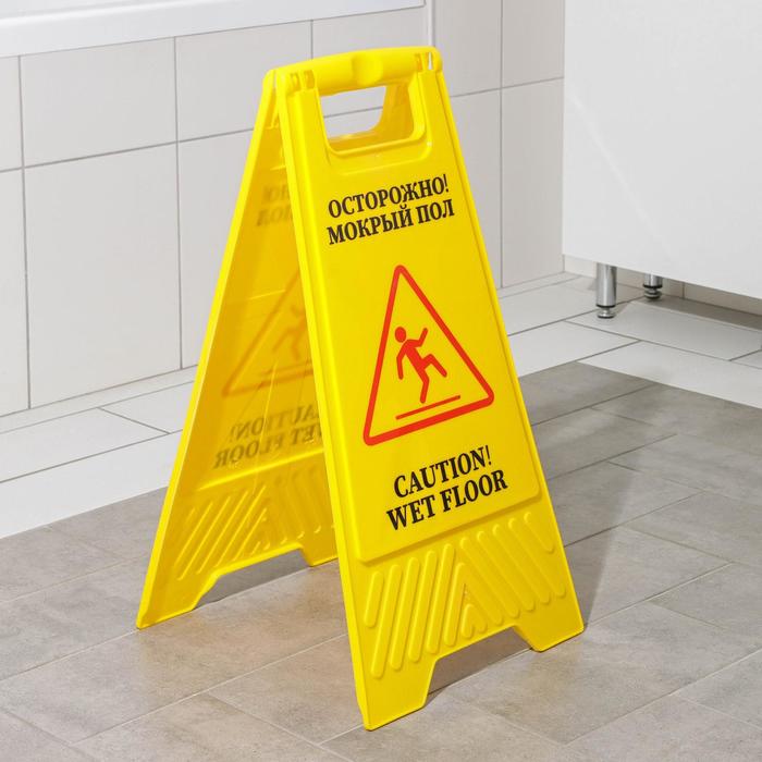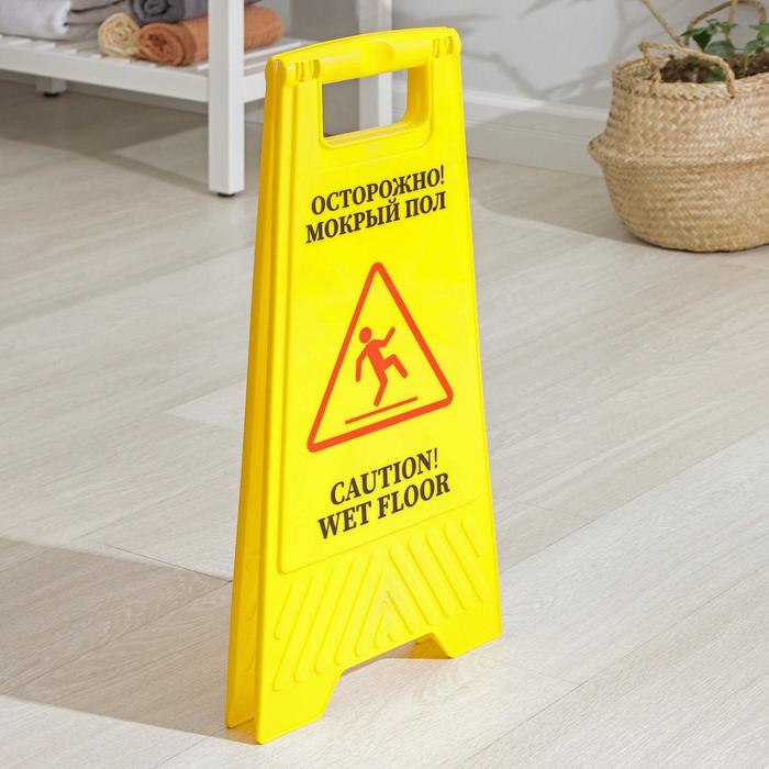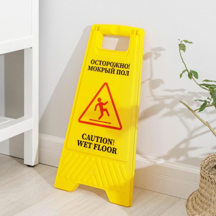 Знак «Мокрый пол», 61×30, пластик, жёлтый — Характеристики