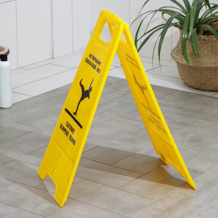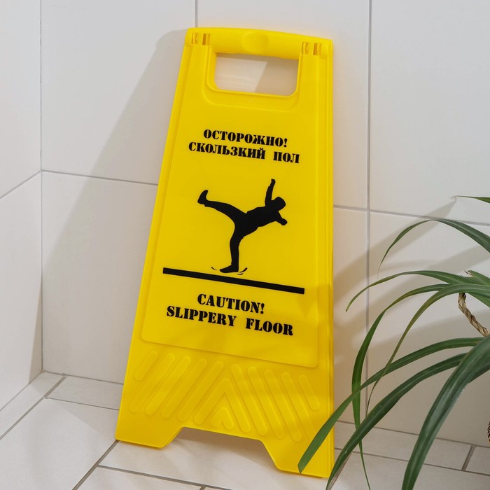 Знак «Осторожно! Скользкий пол», 61×30 см, пластик, цвет жёлтый — Характеристики