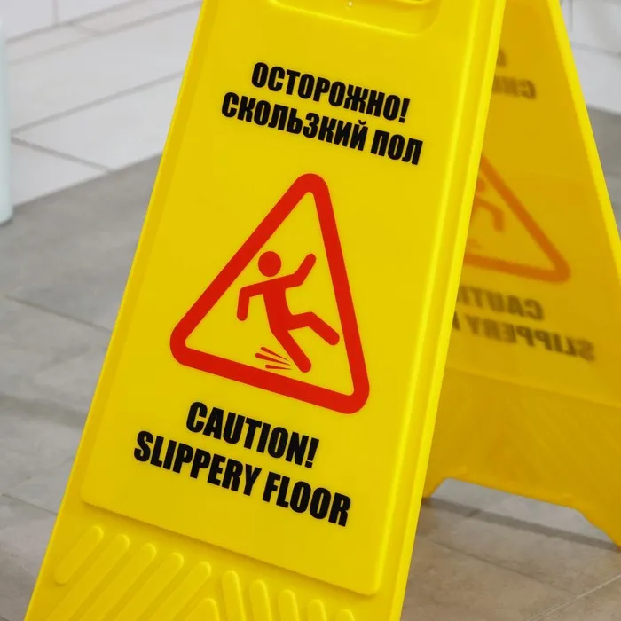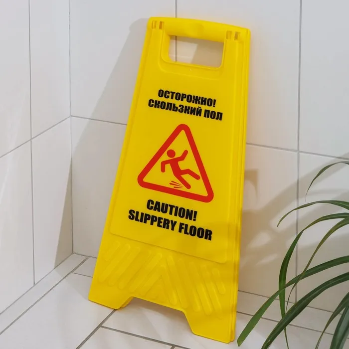 Знак «Осторожно! Скользкий пол», 61×30 см, пластик, жёлтый — Характеристики