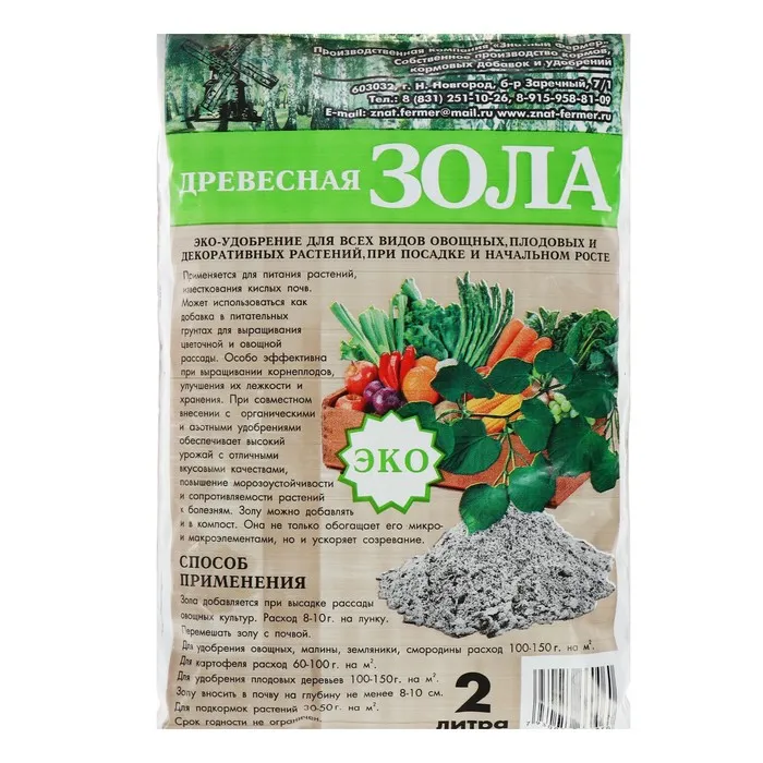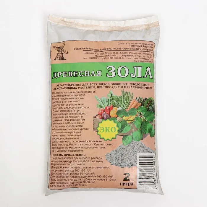 Зола добавляется при высадке рассады овощных культур. Расход 8-10 г на лунку. Перемешать золу с почвой. Для удобрения овощных, малины, земляники, смородины. Расход 100-150 г на м². Для картофеля. Расход 60-100 г на м². Для удобрения плодовых деревьев. Расход 100-150 г на 1 м². Золу вносить в почву на глубину не менее 8-10 см. Для подкормок растений. Расход 30-50 г на м².