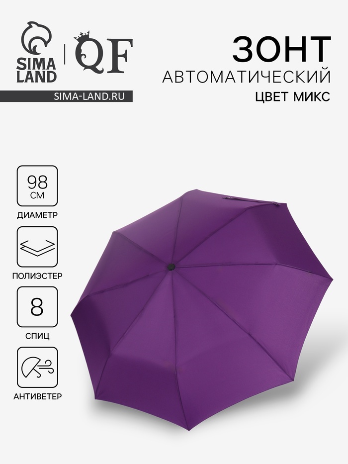 Зонт автоматический Casper, ветроустойчивый, 3 сложения, 8 спиц, R=49/55 см, d=98 см, МИКС — Характеристики