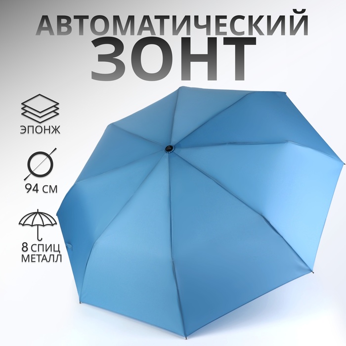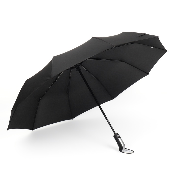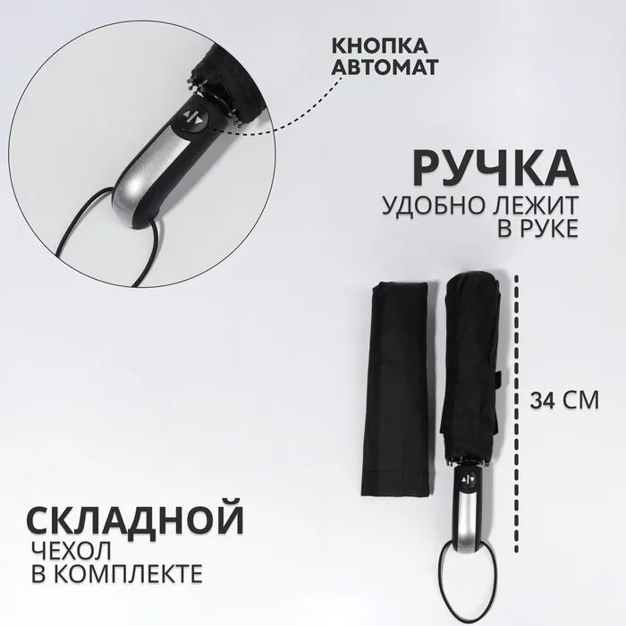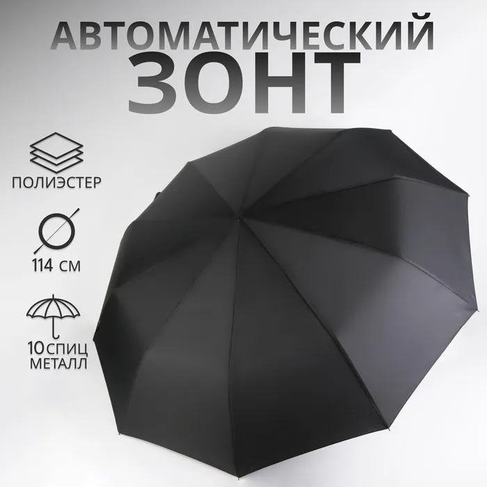 Зонт автоматический «Однотон», 3 сложения, 10 спиц, R=50/57 см, d=100 см, чёрный — Характеристики