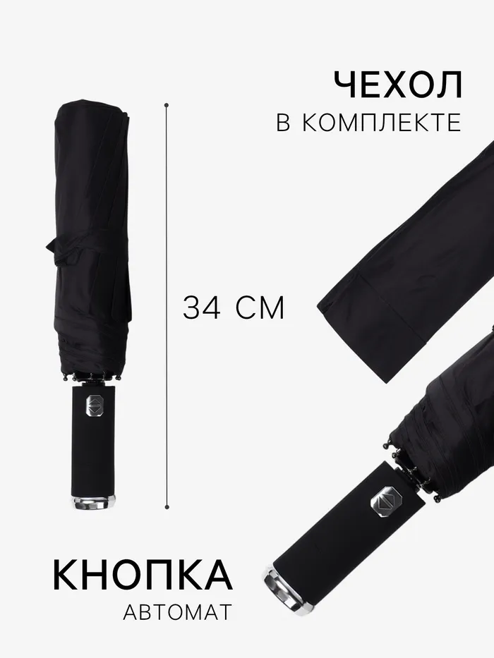 Автоматический зонт с прочным куполом из 100% полиэстера. Он открывается и закрывается нажатием кнопки. Ручка удобно лежит в руке и не выскальзывает. Зонт унисекс, идеально подойдёт, как женщинам, так и мужчинам.