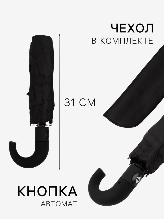Зонт автоматический «Однотонный», 3 сложения, 8 спиц, R=48/55 см, d=96 см чёрный — Характеристики