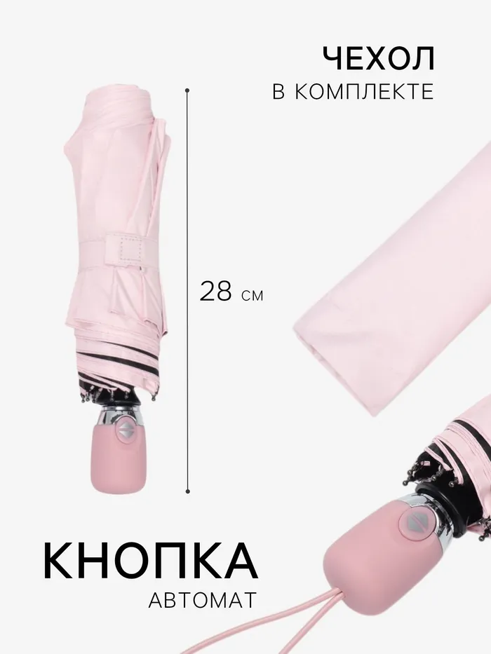 Автоматический зонт с прочным куполом из 100% полиэстера. Он открывается и закрывается нажатием кнопки. Ручка удобно лежит в руке и не выскальзывает. Зонт унисекс, идеально подойдёт, как женщинам, так и мужчинам.