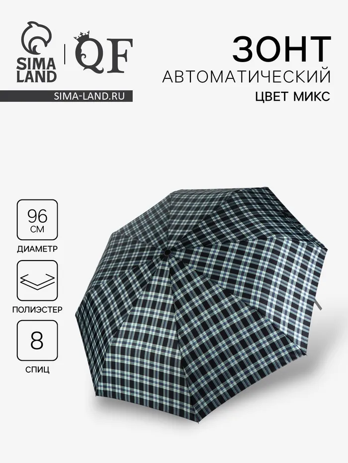 Зонт автоматический «Сдержанность», 3 сложения, 8 спиц, R=48/55 см, d=96 см, МИКС — Характеристики