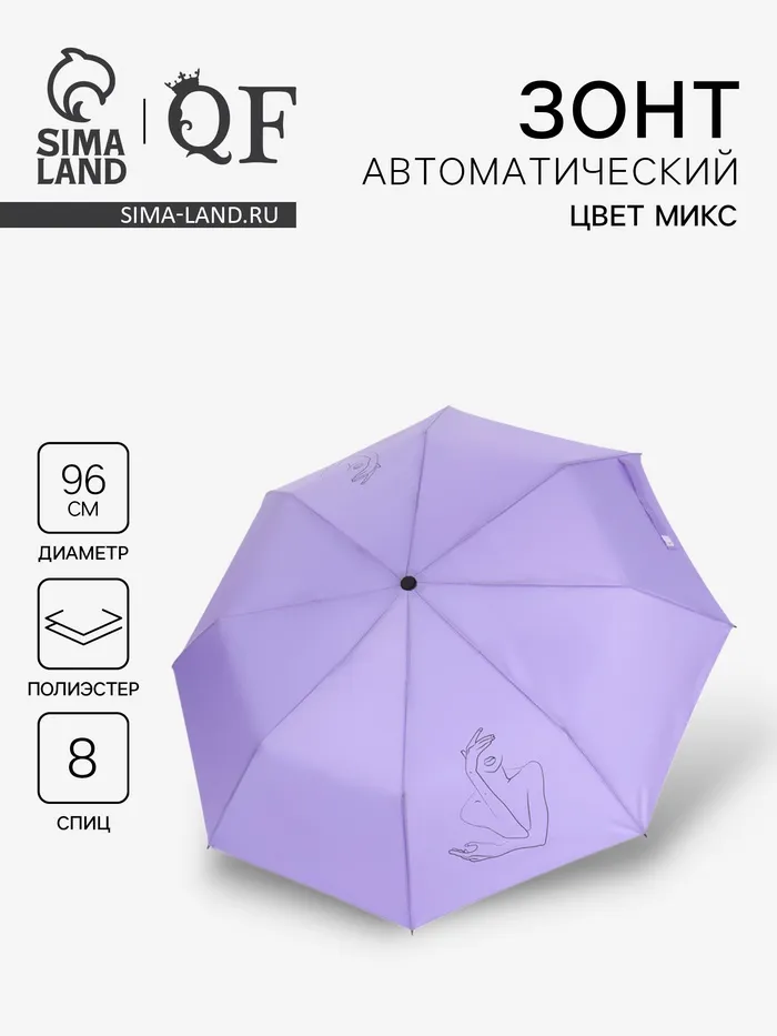 Зонт автоматический «Силуэт», 3 сложения, 8 спиц, R=48/55 см, d=96 см, МИКС — Характеристики