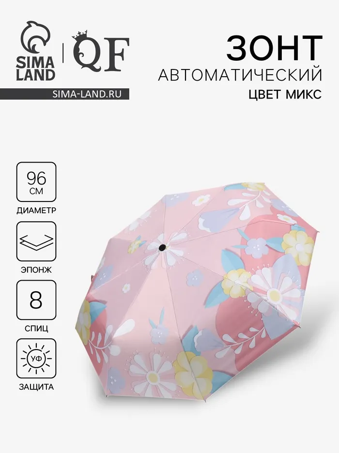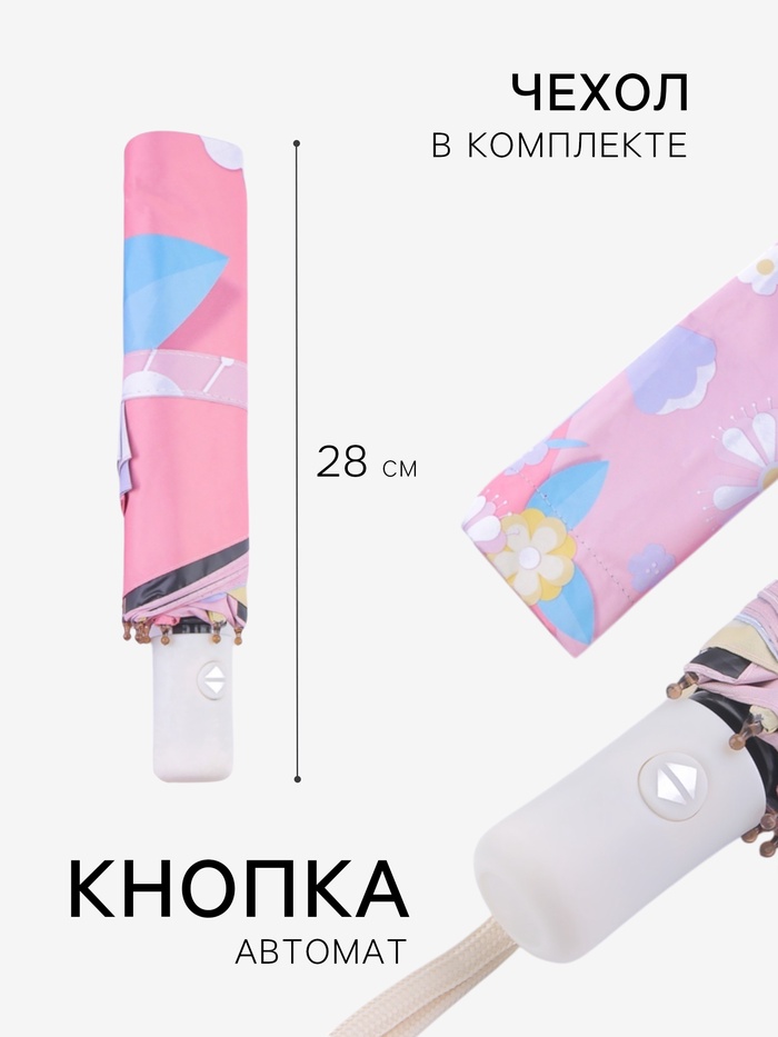 Потрясающий зонт будет Вашим верным помощником в дождливую погоду. Система данного зонта – автоматическая. От других моделей отличается простотой в использовании. Размеры зонта обеспечивают комфорт и защиту. Радиус внутри зонта (до ручки) = 49 см, поверху = 55 см. Ручка удобно лежит в руке. Купол зонта состоит из эпонжа. Материал устойчив к внешнему воздействию. Достаточно быстро сохнет. Влага не задерживается и стекает вниз. Такие зонты пользуются наибольшей популярностью. Зонт оснащён защитой от солнечных лучей.