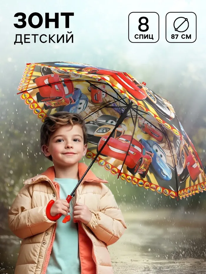 Зонт детский, 8 спиц, Ø 87 см, Тачки — Характеристики