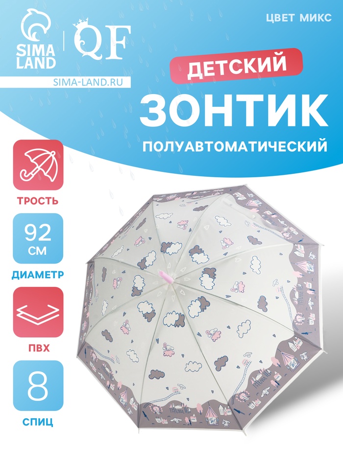 Зонт защитит от намокания и позволит малышу не торопясь гулять под дождём, не забывая при этом проверить глубину близлежащих луж. Благодаря несложной конструкции зонта не составит труда раскрыть его, а небольшой вес не нагрузит хрупкую ручку малыша.