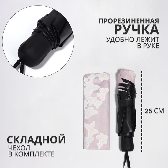 Зонт механический «Бабочки», с проявляющимся рисунком, эпонж, 4 сложения, 8 спиц, R=49/55 см, d=98 см, розовый — Характеристики