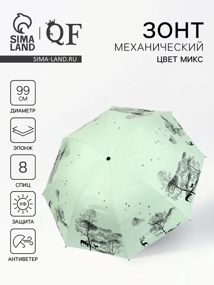 Зонт механический «Деревья», эпонж, 4 сложения, 8 спиц, R=49/56 см, d=98 см, МИКС — Характеристики