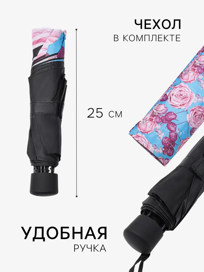 Зонт механический «Розы», эпонж, 4 сложения, 8 спиц, R=48/55 см, d=96 см, МИКС — Характеристики
