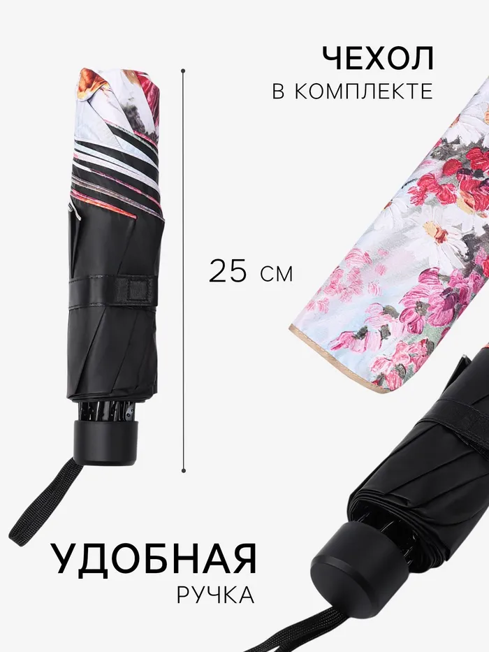 Зонт механический «Цветочная картина», эпонж, 4 сложения, 8 спиц, R=48/55 см, d=96 см, МИКС — Характеристики
